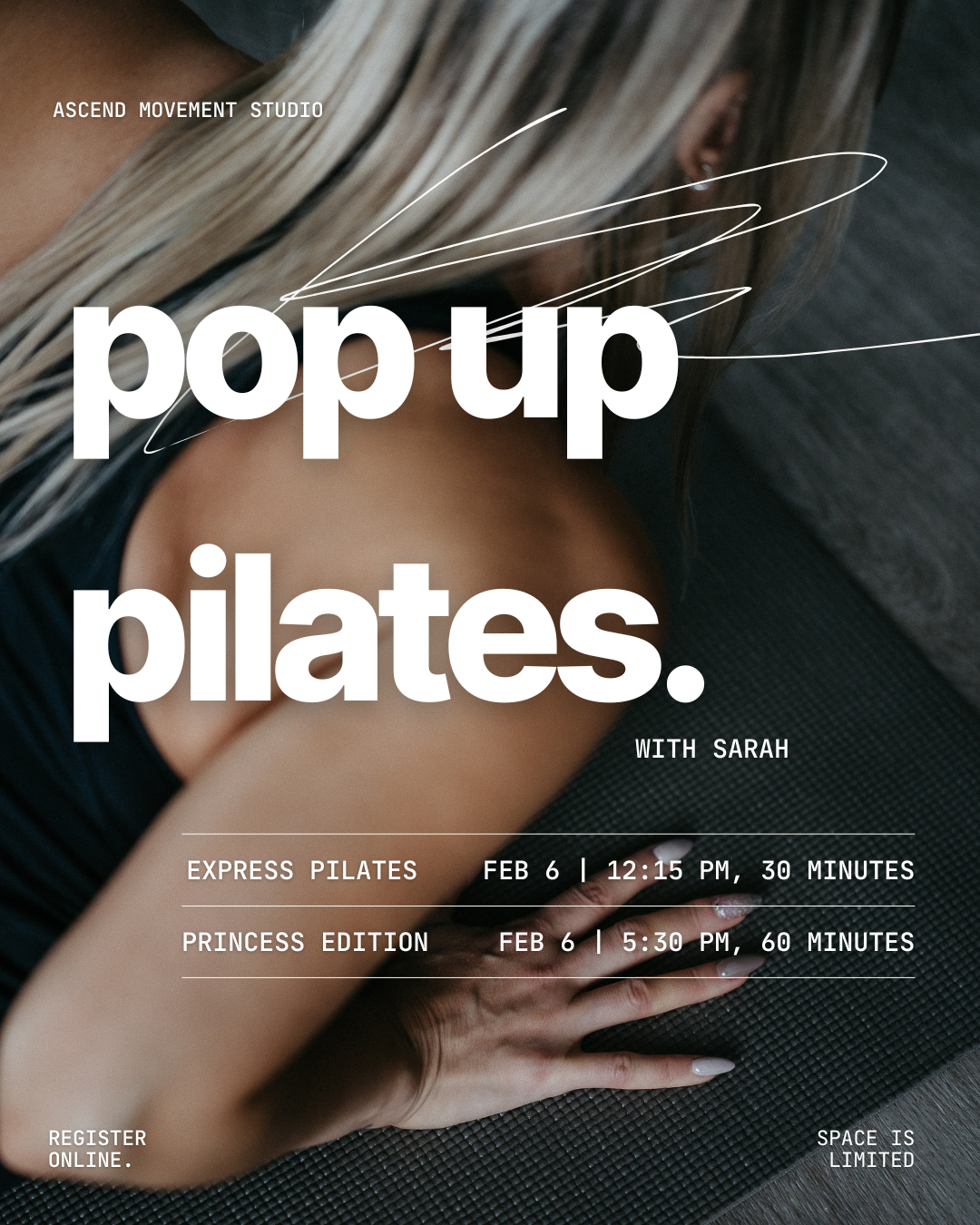 Step into a premium 30-minute mat experience with Sarah—designed to tone, strengthen, and energize your body efficiently and effectively. This exclusive, express session gives you the benefits of a full Pilates class in just half an hour, perfect for busy schedules without compromising on quality.