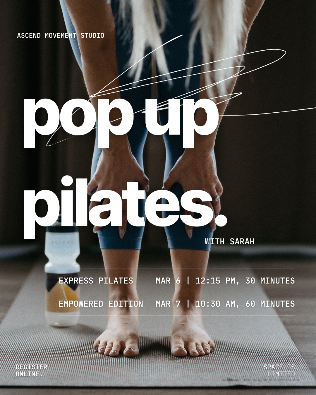 Step into a premium 30-minute mat experience with Sarah—designed to tone, strengthen, and energize your body efficiently and effectively. This exclusive, express session gives you the benefits of a full Pilates class in just half an hour, perfect for busy schedules without compromising on quality.